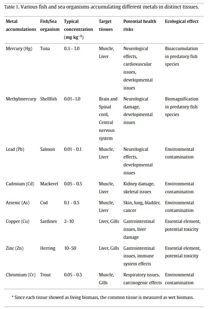 - Dey, Sukhendu & Rajak, Prem & Sen, Kamalesh. (2024). Bioaccumulation of metals and metalloids in seafood: A comprehensive overview of mobilization, interactive effects in eutrophic environments, and implications for public health risks. Journal of Trace Elements and Minerals. 8. 100141. 10.1016/j.jtemin.2024.100141.