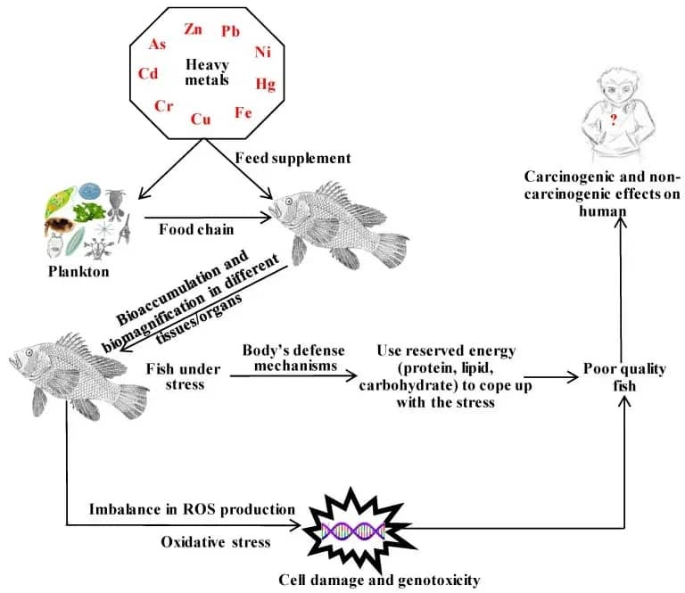 - Jamil Emon F, Rohani MF, Sumaiya N, Tuj Jannat MF, Akter Y, Shahjahan M, Abdul Kari Z, Tahiluddin AB, Goh KW. Bioaccumulation and Bioremediation of Heavy Metals in Fishes-A Review. Toxics. 2023 Jun 6;11(6):510. doi: 10.3390/toxics11060510. PMID: 37368610; PMCID: PMC10302055.